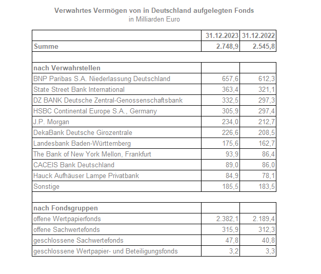 31 Depotbanken verwahren 2,8 Billionen Euro für deutsche Fonds