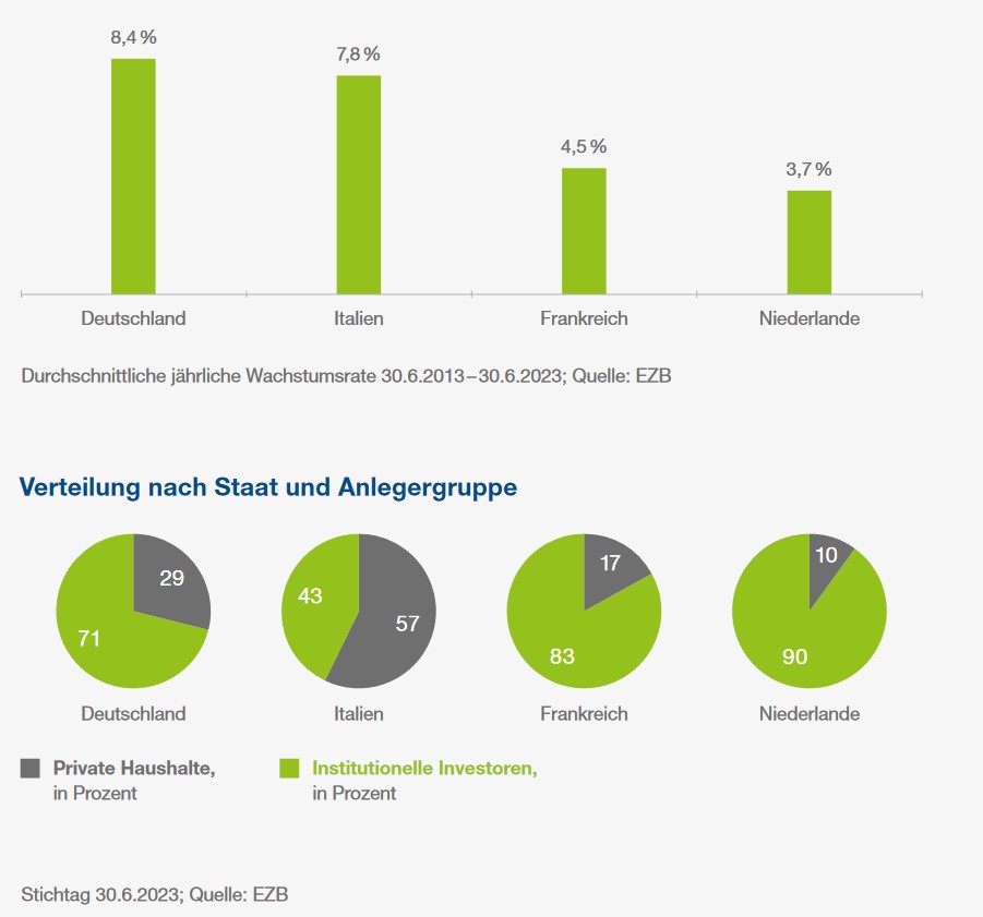 In den vergangenen zehn Jahren wuchs das Fondsvermögen in Deutschland im Schnitt um 8,4 Prozent pro Jahr. In der EU liegt Deutschland damit vor anderen großen Märkten wie Italien oder Frankreich.