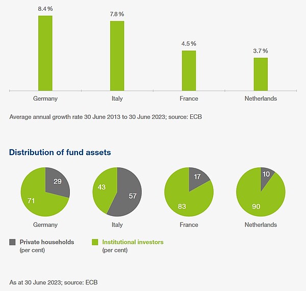 Over the past ten years, fund assets in Germany have grown by an average of 8.4 per cent per year. In the EU, Germany is thus ahead of other large markets such as Italy or France.