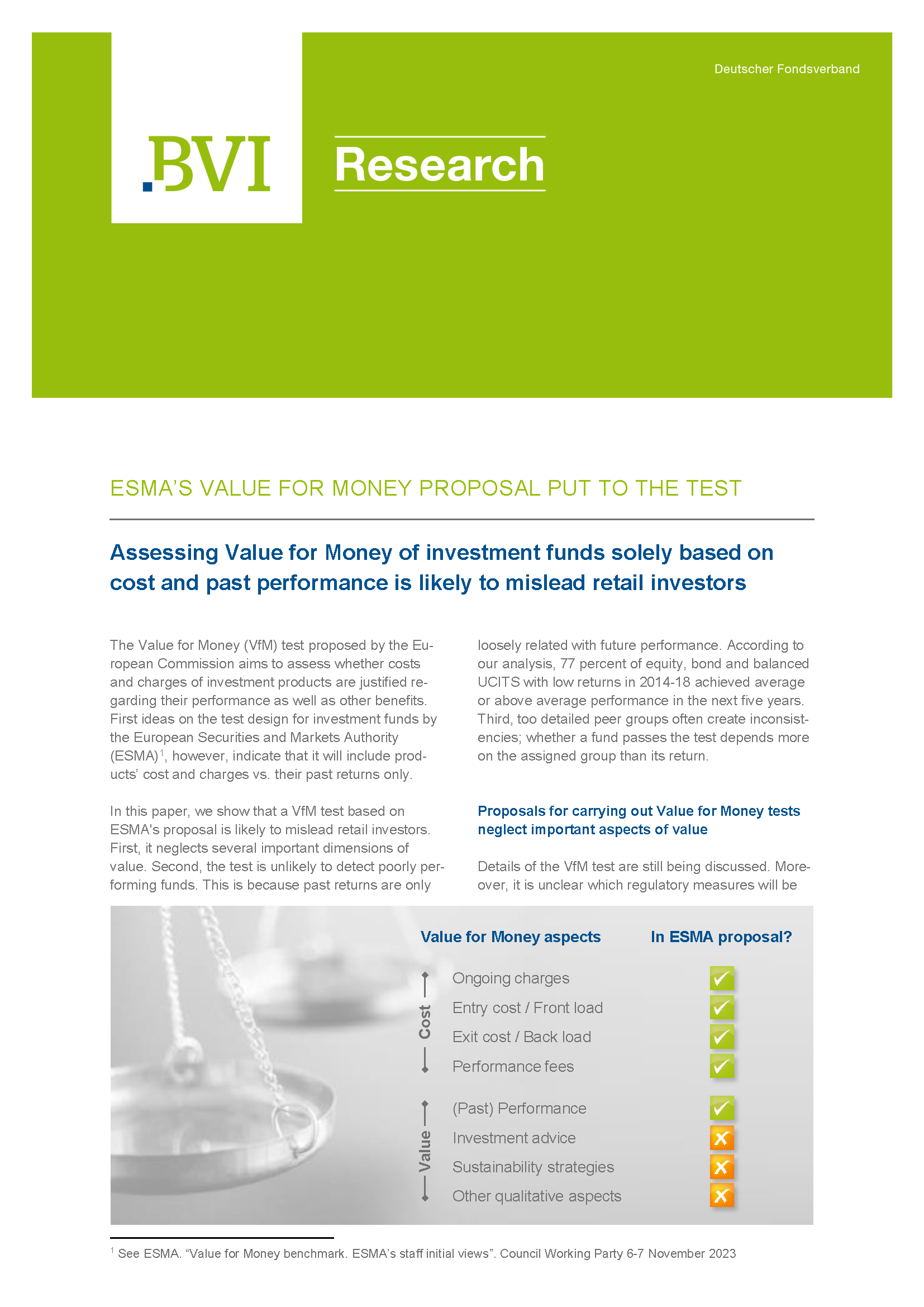 Assessing Value for Money of investment funds solely based on cost and past performance is likely to mislead retail investors.