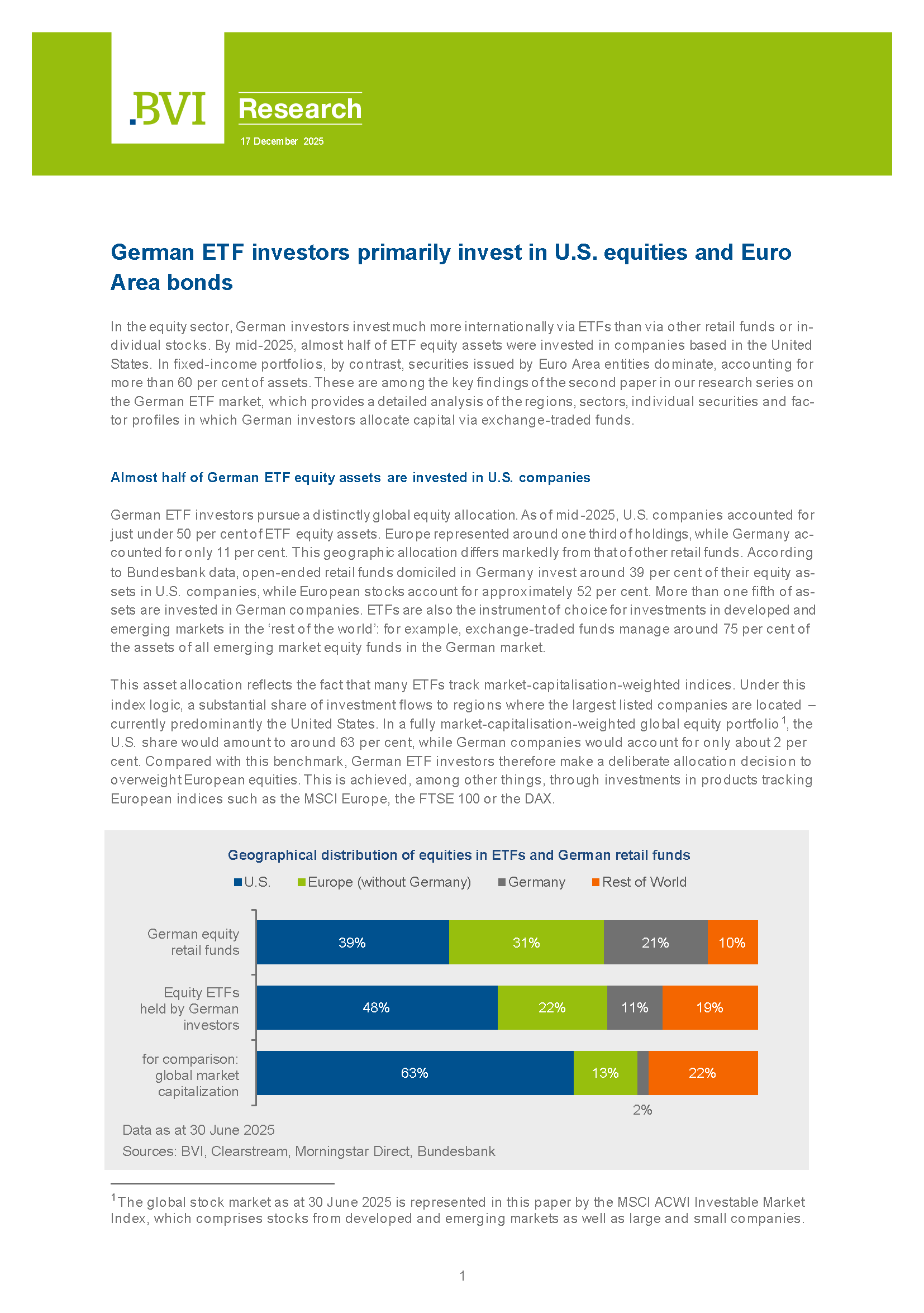 German ETF investors primarily invest in U.S. equities and Euro Area bonds