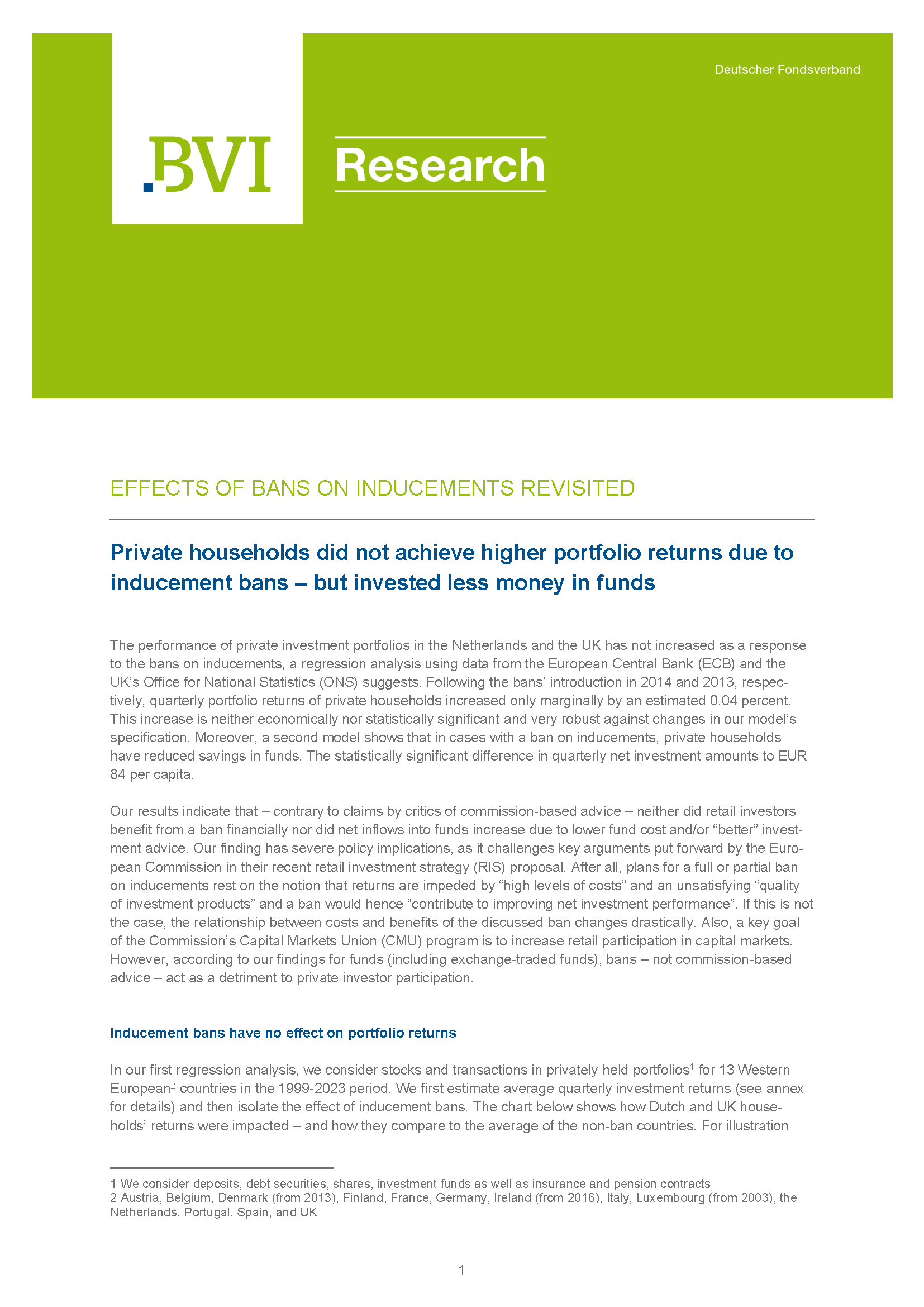 Private households did not achieve higher portfolio returns due to inducement bans – but invested less money in funds