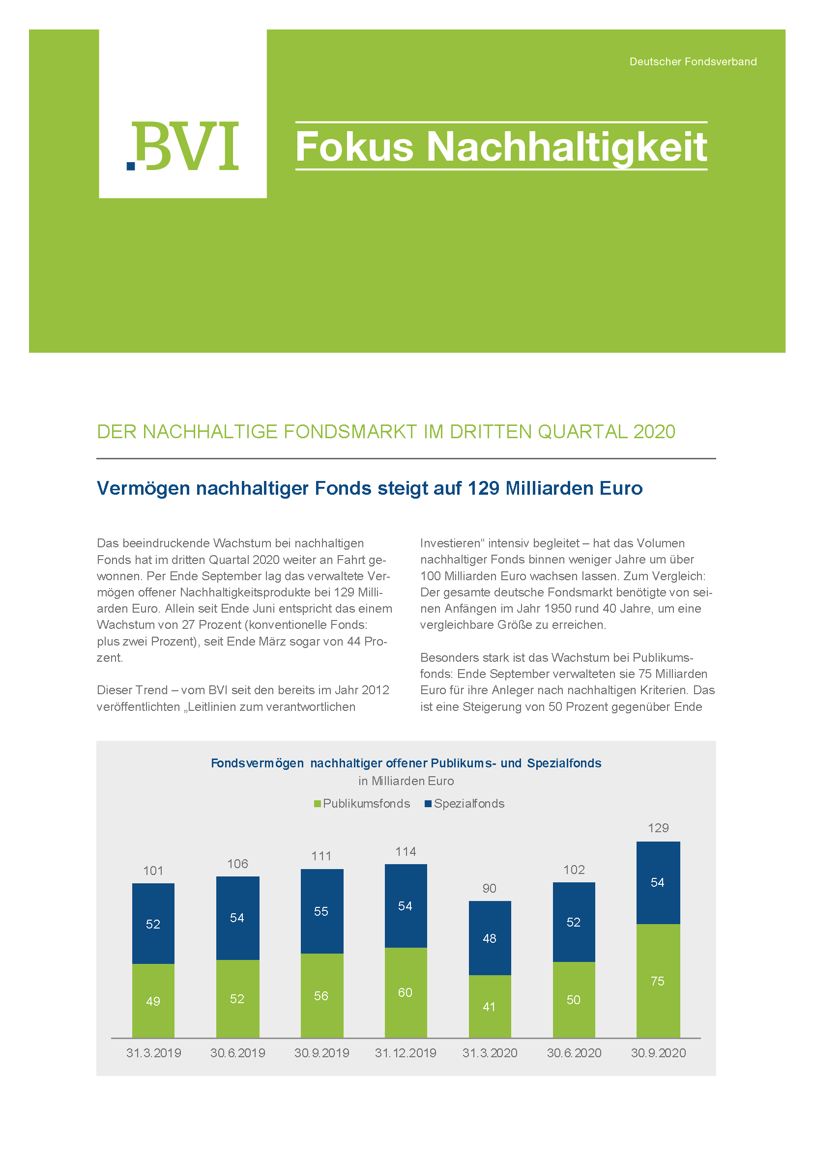 Assets under management of sustainable funds rise to EUR 129 bn.