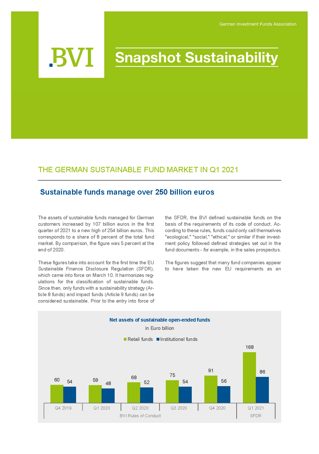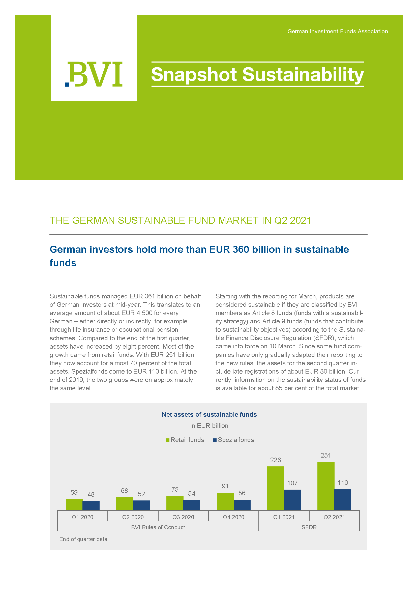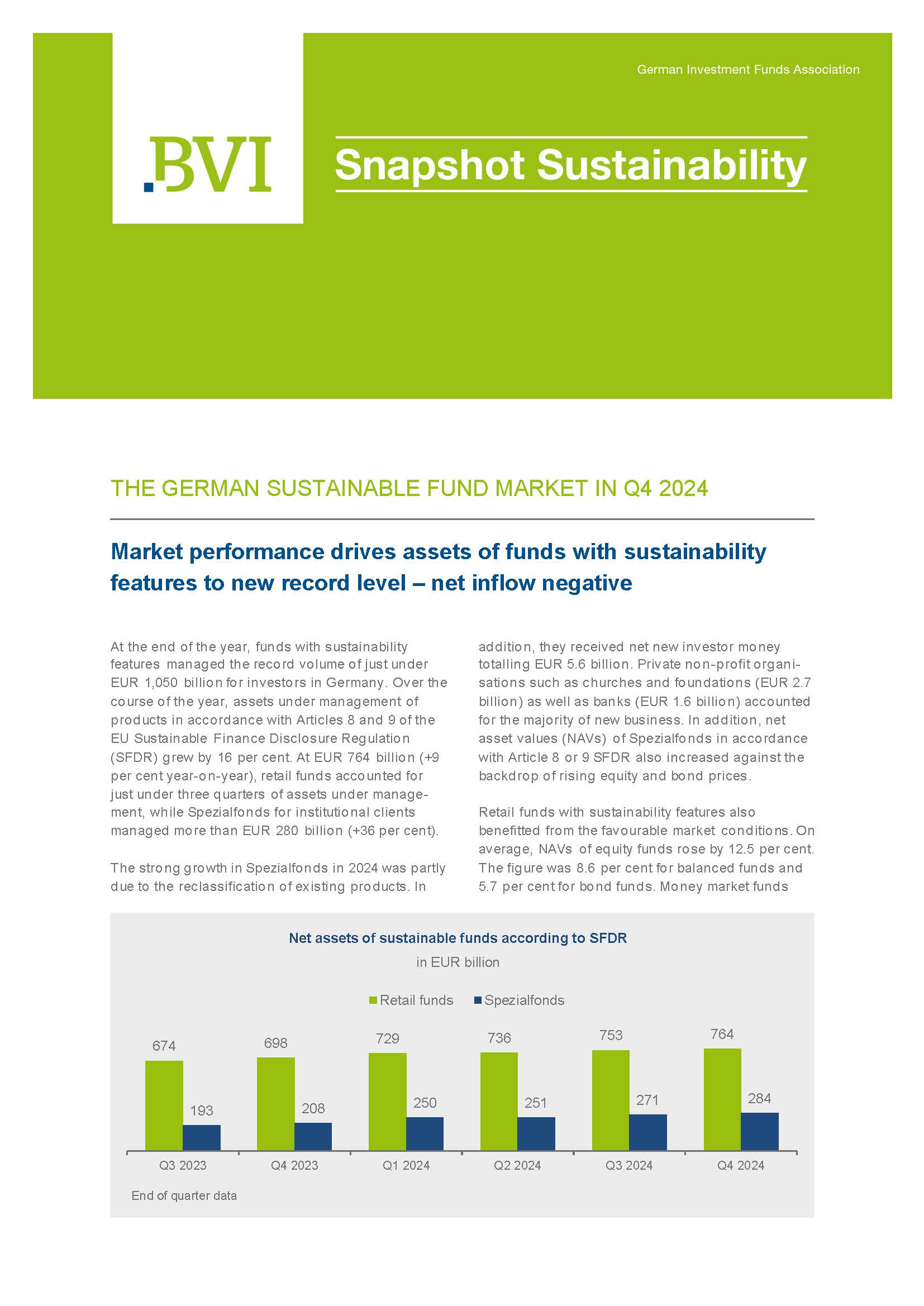 German investors hold more than one trillion euros in funds with sustainability features for the first time.