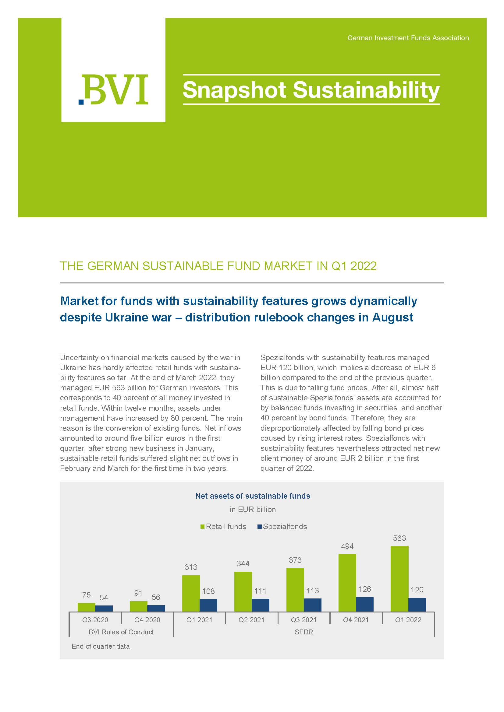 Market for funds with sustainability features grows dynamically despite Ukraine war – distribution rulebook changes in August.