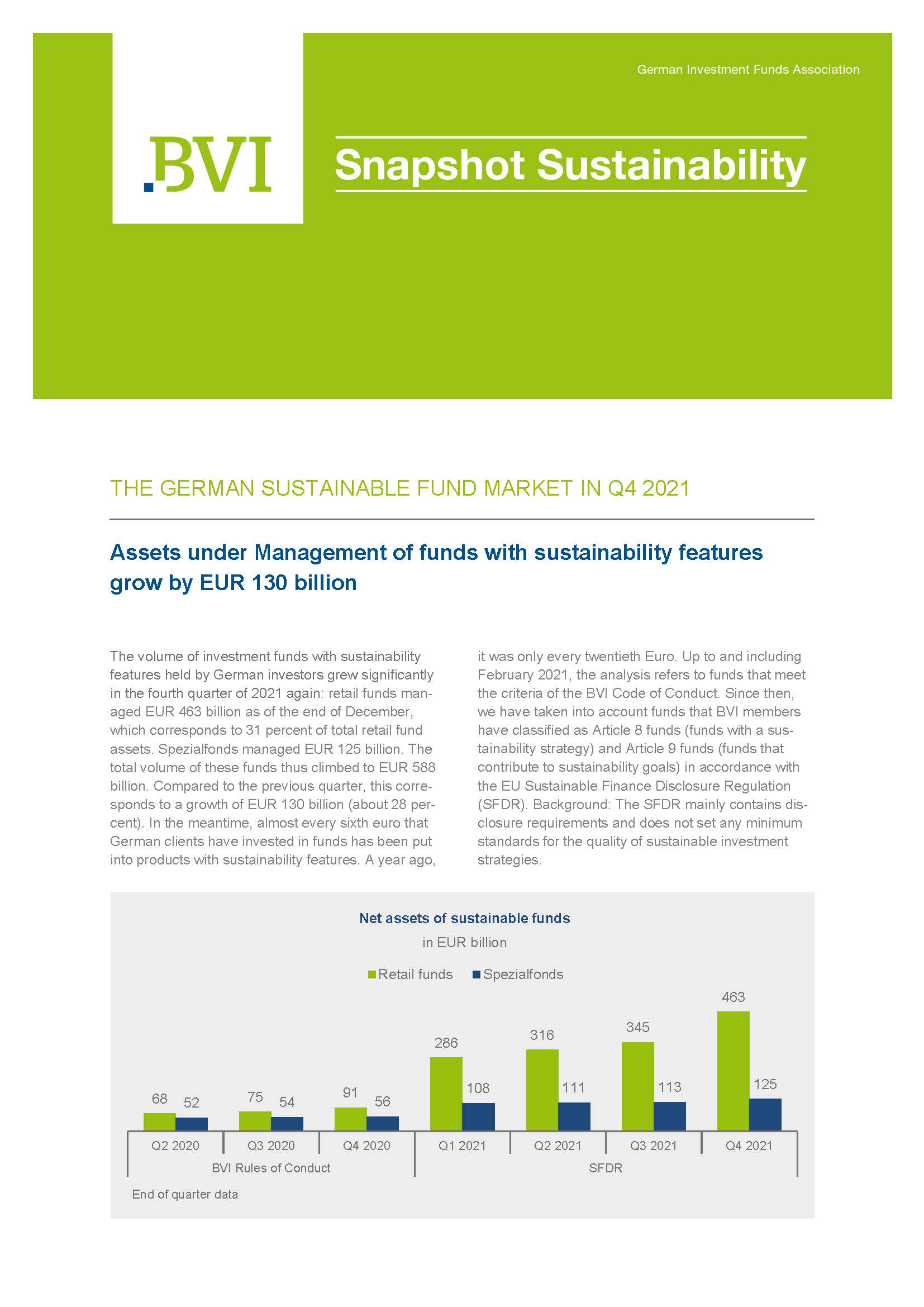 Assets under Management of funds with sustainability features grow by EUR 130 billion.