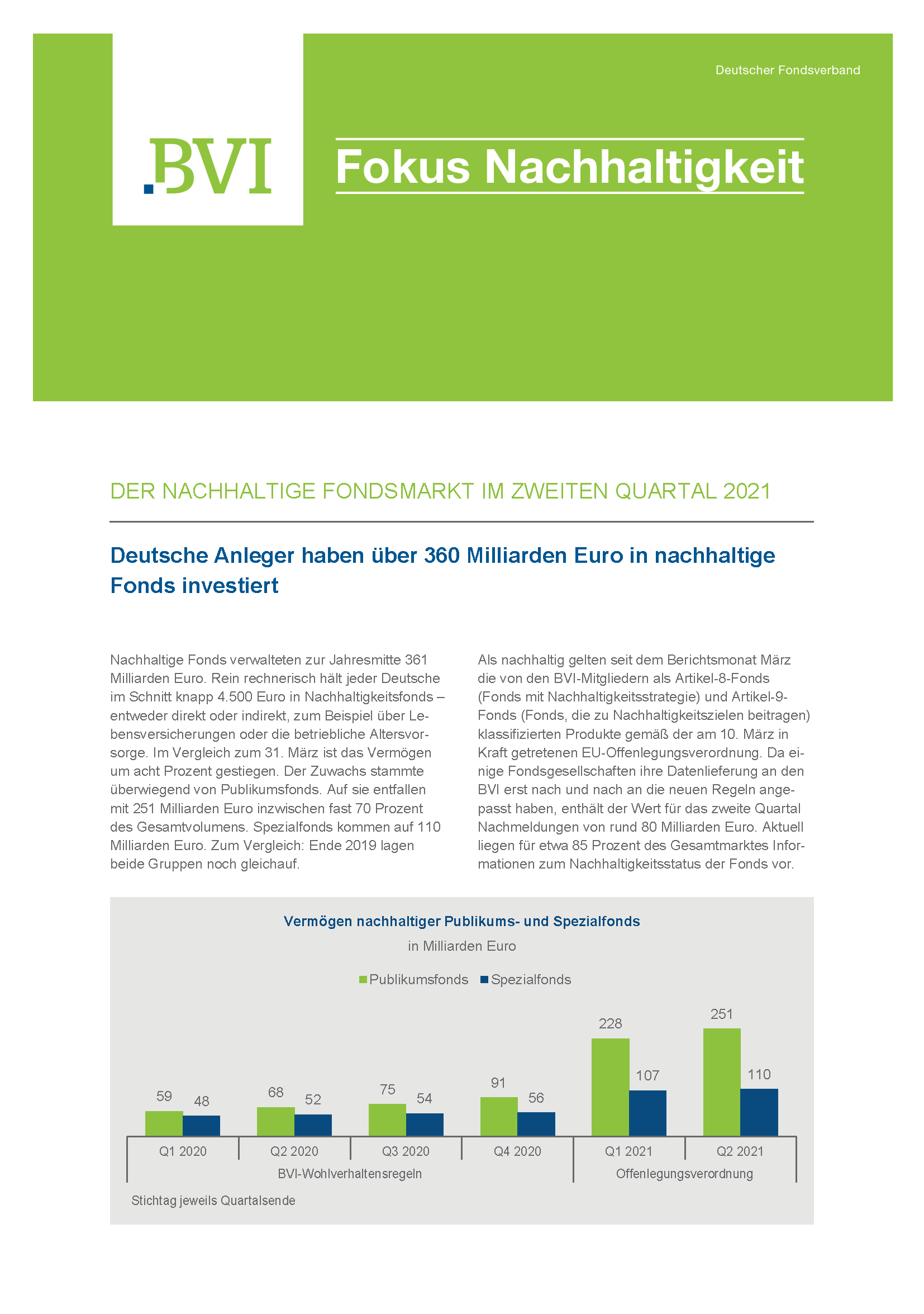Deutsche Anleger haben über 360 Milliarden Euro in nachhaltige Fonds investiert.