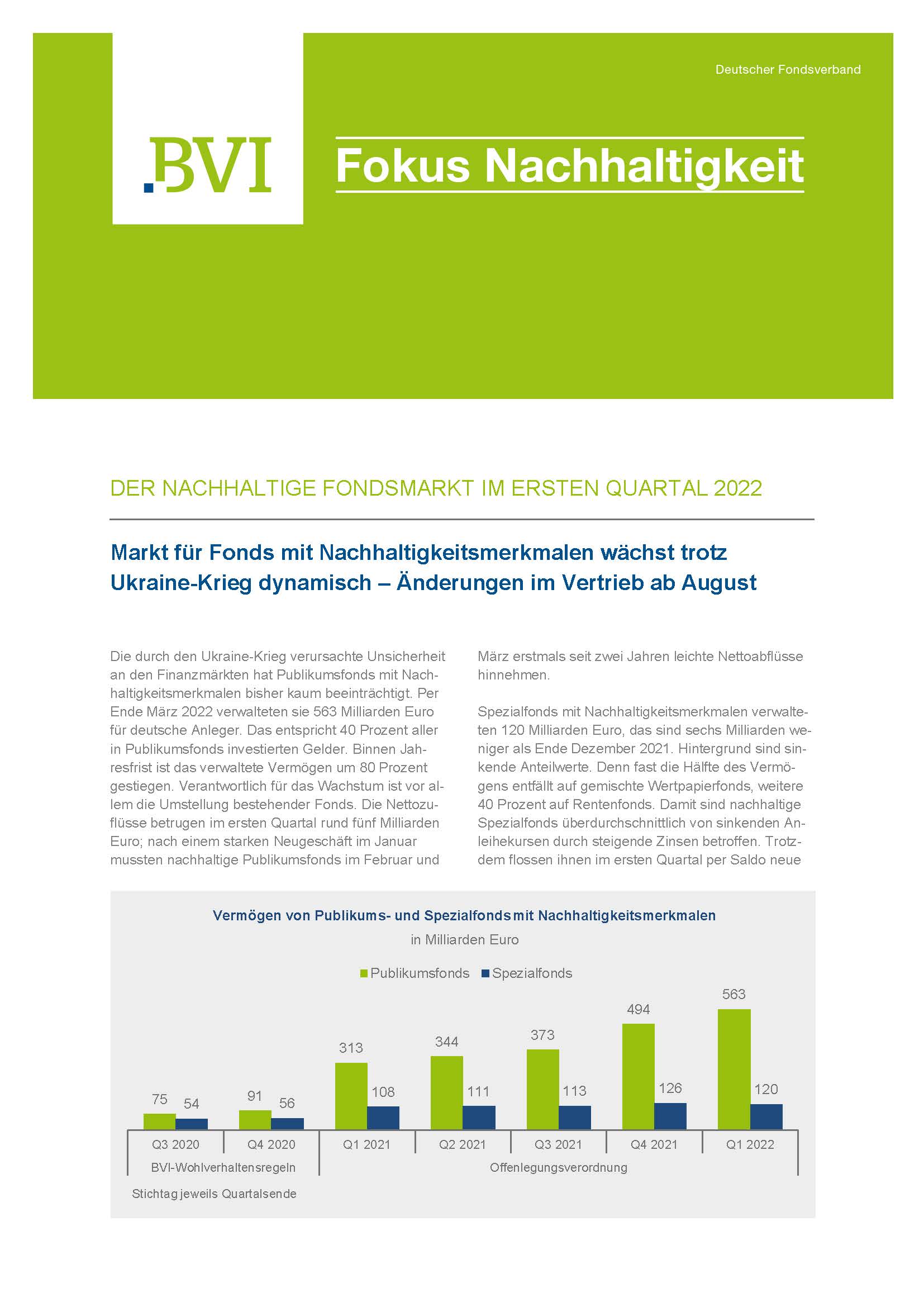 Markt für Fonds mit Nachhaltigkeitsmerkmalen wächst trotz Ukraine-Krieg dynamisch – Änderungen im Vertrieb ab August.