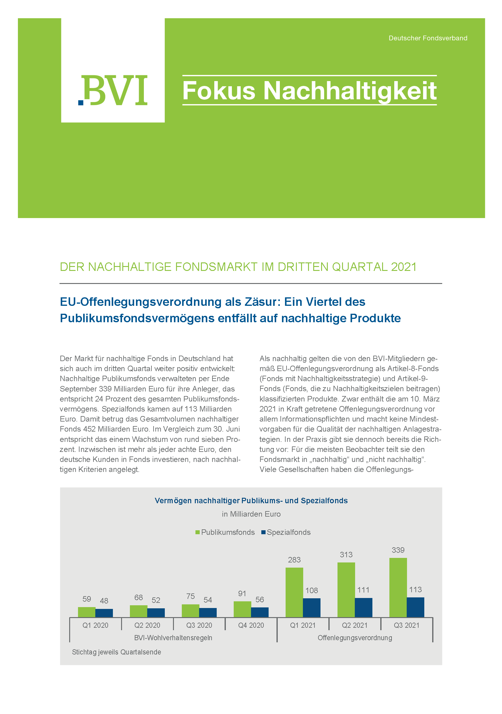 EU-Offenlegungsverordnung als Zäsur: Ein Viertel des Publikumsfondsvermögens entfällt auf nachhaltige Produkte.