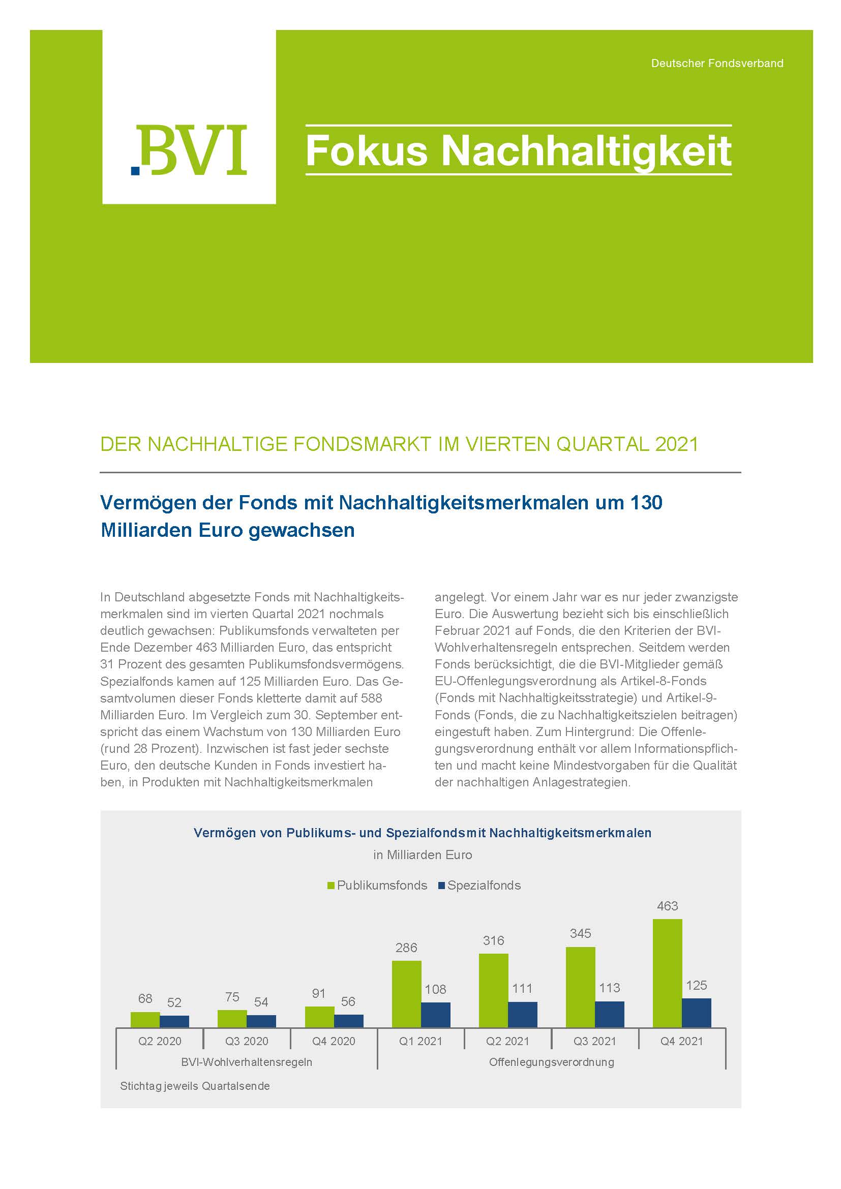 Vermögen der Fonds mit Nachhaltigkeitsmerkmalen um 130 Milliarden Euro gewachsen.